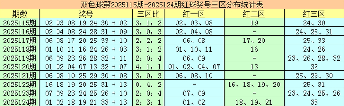 袁智囊双色球第2025125期红球三区走势分析: